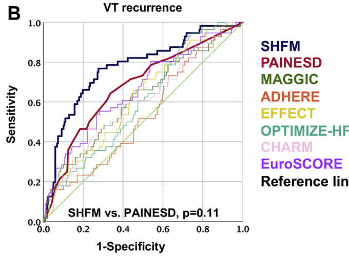 Objectives This study sought to assess the performance of established risk models in predicting outcomes after catheter ablation (CA) in patients with nonischemic dilated cardiomyopathy (NIDCM) and ventricular tachycardia (VT). Background A correct pre-procedural risk stratification of patients with NIDCM and VT undergoing CA is crucial. The performance of different pre-procedural risk stratification approaches to predict outcomes of CA of VT in patients with NIDCM is unknown. Methods The study compared the performance of 8 prognostic scores (SHFM [Seattle Heart Failure Model], MAGGIC [Meta-analysis Global Group in Chronic Heart Failure], ADHERE [Acute Decompensated Heart Failure National Registry], EFFECT [Enhanced Feedback for Effective Cardiac Treatment-Heart Failure], OPTIMIZE-HF [Organized Program to Initiate Lifesaving Treatment in Hospitalized Patients with Heart Failure], CHARM [Candesartan in Heart Failure-Assessment of Reduction in Mortality], EuroSCORE [European System for Cardiac Operative Risk Evaluation], and PAINESD [Chronic Obstructive Pulmonary Disease, Age > 60 Years, Ischemic Cardiomyopathy, New York Heart Association Functional Class III or IV, Ejection Fraction <25%, Presentation With VT Storm, Diabetes Mellitus]) for the endpoints of death/cardiac transplantation and VT recurrence in 282 consecutive patients (age 59 ± 15 years, left ventricular ejection fraction: 36 ± 13%) with NIDCM undergoing CA of VT. Discrimination and calibration of each model were evaluated through area under the curve (AUC) of receiver-operating characteristic curve and goodness-of-fit test. Results After a median follow-up of 48 (interquartile range: 19–67) months, 43 patients (15%) died, 24 (9%) underwent heart transplantation, and 58 (21%) experienced VT recurrence. The prognostic accuracy of SHFM (AUC = 0.89; goodness-of-fit p = 0.68 for death/transplant and AUC = 0.77; goodness-of-fit p = 0.16 for VT recurrence) and PAINESD (AUC = 0.83; goodness-of-fit p = 0.24 for death/transplant and AUC = 0.68; goodness-of-fit p = 0.58 for VT recurrence) were significantly superior to that of other scores. Conclusions In patients with NIDCM and VT undergoing CA, the SHFM and PAINESD risk scores are powerful predictors of recurrent VT and death/transplant during follow-up, with similar performance and significantly superior to other scores. A pre-procedural calculation of the SHFM and PAINESD can be useful to predict outcomes.